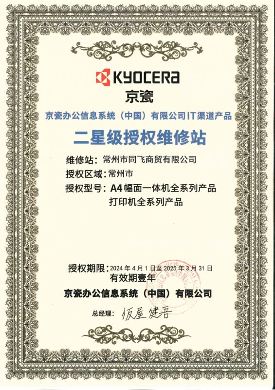 京瓷同飛維修站授權2024